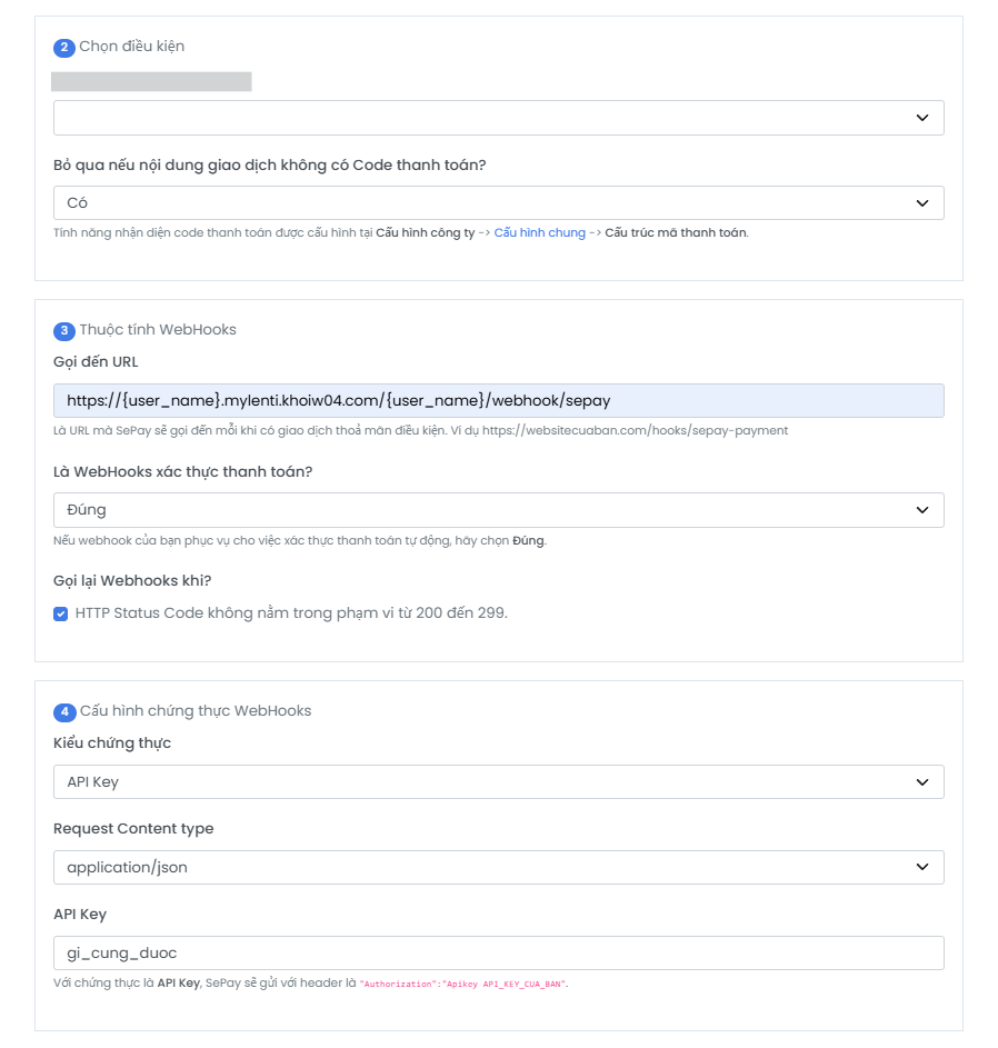 ⚠️ Nhập đúng thông tin đã dùng bên Sepay!