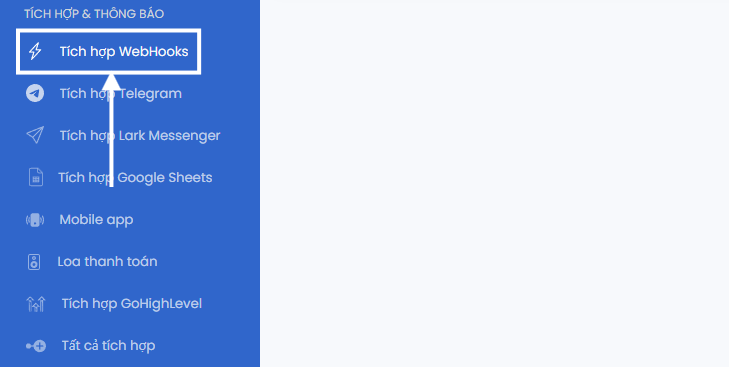- Vào: Tích hợp & Thông báo > WebHooks